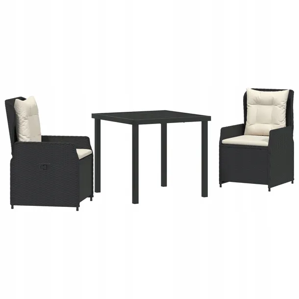 5-częściowy zestaw obiadowy do ogrodu w beżowym polirattanie, Stół ogrodowy czarny 80x80x73 cm ze szkła hartowanego