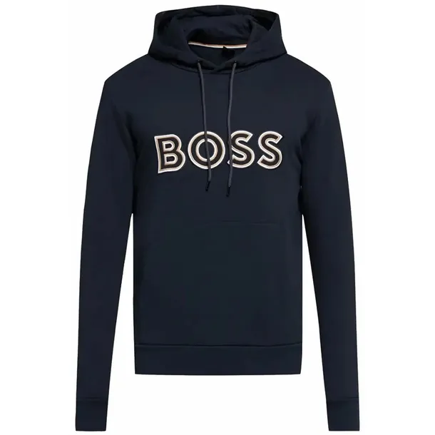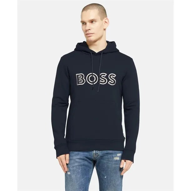 Podążasz za trendami i chcesz wyglądać efektownie? Bluza z nowej kolekcji Hugo Boss to model dla Ciebie! Seeger 105 to wykonana w większości z bawełny bluza dresowa. Ma prostokątny krój, kaptur i haftowaną aplikację z napisem BOSS w centralnej części. Jej prostota i uniwersalność to największa zaleta tego modelu.