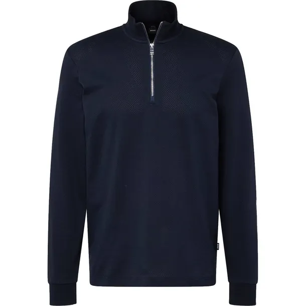 Podążasz za trendami i chcesz wyglądać efektownie? Bluza z nowej kolekcji Hugo Boss to model dla Ciebie! Tenore 20 to wykonany w 100% z bawełny longsleeve męski. Ma prostokątny krój, stójkę i raglanowe rękawy. Jego prostota i uniwersalność to największa zaleta tego modelu. Suwak przy kołnierzu ułatwia zakładanie i zdejmowanie. Dziurkowana tkanina zapewnia dużą przepuszczalność powietrza.