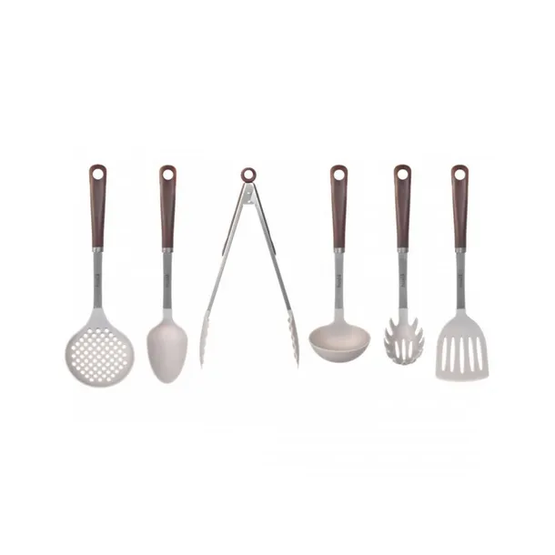 Nasz zestaw skomponowaliśmy tak , aby najbardziej przydatne przybory kuchenne zawsze były pod ręką. Dodatkowo unikatowy brązowy plastik w połączeniu z ciepło szarym nylonem sprawia, że zestaw nie tylko wygląda wyjątkowo, ale również jest świetnym kompanem w codziennym gotowaniu.
