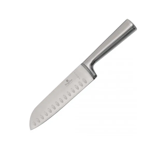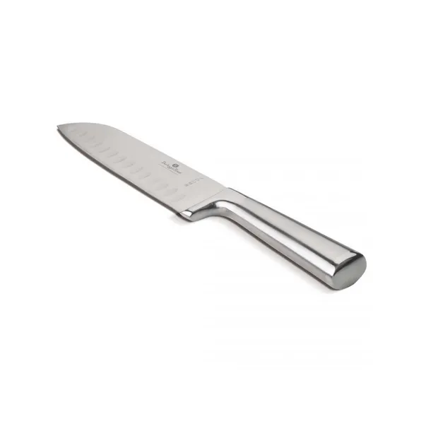 Nóż Santoku Berlinger Haus to wszechstronny nóż kuchenny, który łączy w sobie tradycyjny japoński design z nowoczesną funkcjonalnością. Wykonany z wysokiej jakości stali nierdzewnej 3CR13, charakteryzuje się dużą odpornością na korozję, trwałością oraz długo utrzymującą się ostrością. Jest idealnym wyborem do precyzyjnego krojenia, siekania i szatkowania, zarówno warzyw, jak i mięsa czy ryb.