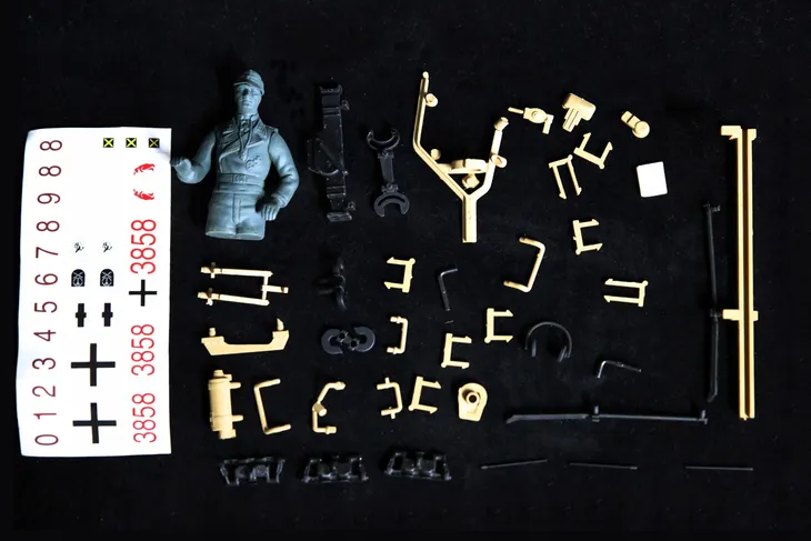 Zestaw zawiera: figurka czołgisty, zatyczka do lufy, element naprawczy do gąsienicy,