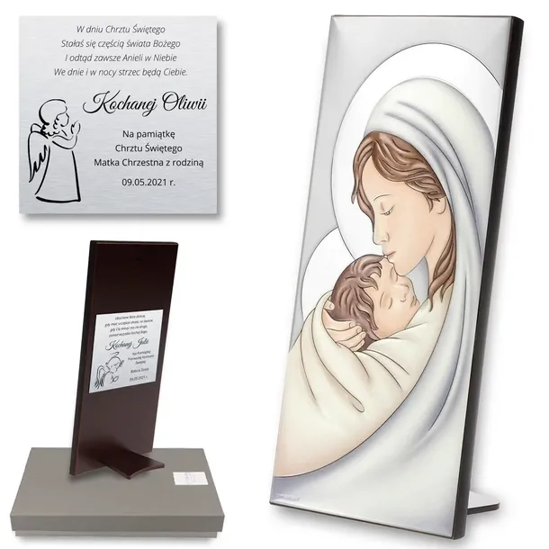 Ekskluzywny Obrazek na Chrzest z Matką Boską - Grawer w Cenie 6381-C