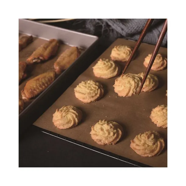 Dzięki odporności na temperatury od -40°C do +230°C (do 428°F), papier sprawdzi się zarówno podczas pieczenia, smażenia, jak i gotowania na parze. Zawsze używaj go razem z jedzeniem – zapobiega przywieraniu potraw, ułatwia utrzymanie urządzeń w czystości i skraca czas sprzątania.