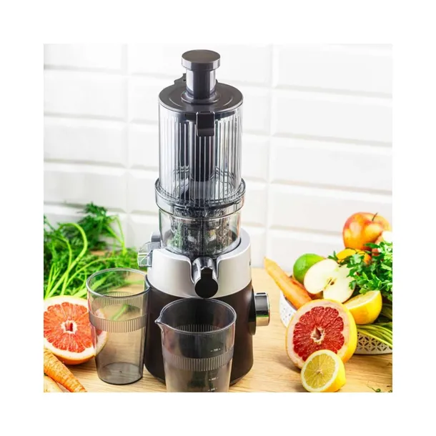 Duży, szeroki otwór o średnicy 113 mm umożliwia łatwe miażdżenie całych owoców i warzyw, co znacznie przyspiesza przygotowanie ulubionych soków. Solidna konstrukcja ze stali nierdzewnej gwarantuje trwałość i elegancki wygląd, który doskonale wpasuje się w każdą kuchnię.