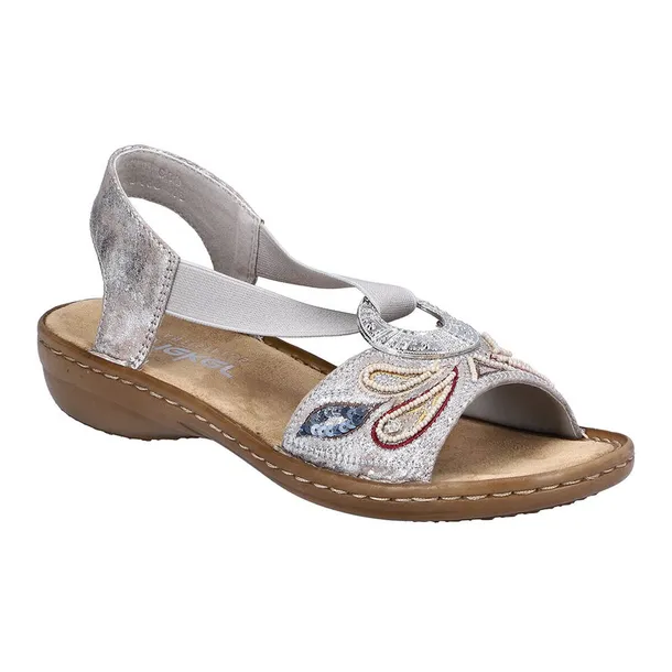 Odkryj wyjątkowy komfort i elegancję z damskimi sandałami Rieker Metallic! To idealny wybór na wiosnę i lato 2025, łączący modny design z wygodą na co dzień. Srebrny kolor nadaje im nowoczesnego, stylowego wyglądu, który doskonale komponuje się zarówno z casualowymi, jak i eleganckimi stylizacjami.