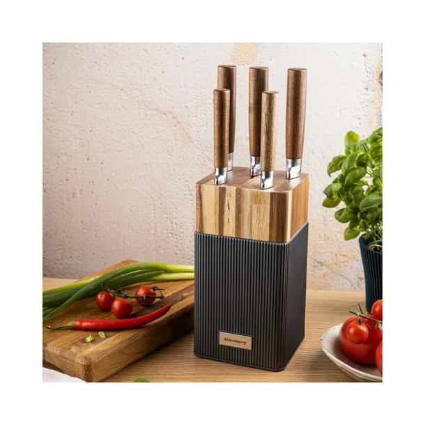 Naturalna elegancja i precyzja krojenia – KLAUSBERG KB-7983 to 6-elementowy zestaw noży w stylu warm modern. Połączenie stali nierdzewnej, drewna akacjowego i żebrowanego grafitowego tworzywa tworzy harmonijny balans między naturą a nowoczesnością. Zestaw zawiera 5 najpotrzebniejszych noży kuchennych oraz stabilny blok, który zapewnia porządek i bezpieczeństwo na blacie.