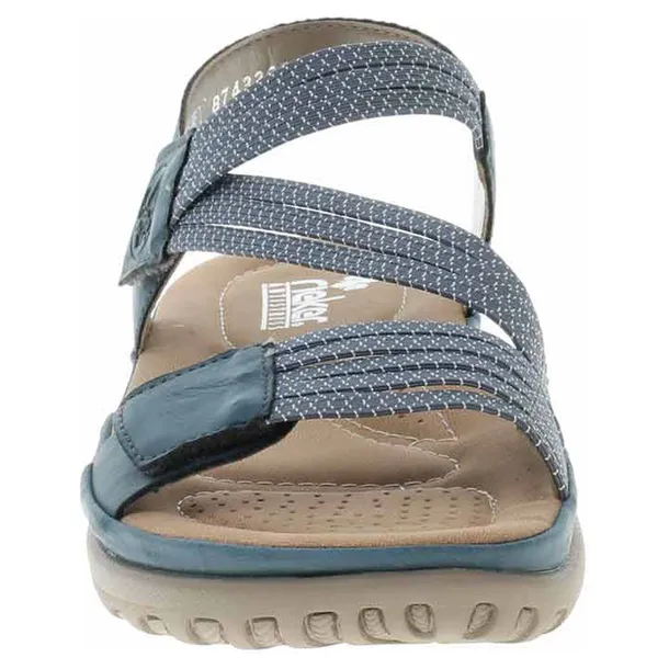 Witaj w naszym sklepie! Prezentujemy piękne damskie sandały marki Rieker, które z pewnością przypadną Ci do gustu. Ich cholewka została wykonana z wysokiej jakości tworzywa skóropodobnego w kolorze eleganckiego niebieskiego. Wnętrze sandałów również zostało wykończone tym samym materiałem, co zapewnia maksymalny komfort noszenia. Co sprawia, że te sandały są wyjątkowe? Ich miękka wkładka, pokryta kremowym tworzywem, zapewni Ci uczucie miękkości i wygody, dzięki czemu możesz cieszyć się nimi przez cały dzień. Podeszwa z wysokogatunkowego tworzywa w kolorze szarym o wysokości 4 cm w obcasie, co dodaje im elegancji i sprawia, że Twoja sylwetka będzie wyglądać jeszcze piękniej. Sandał ten został zaprojektowany z myślą o wygodzie, dlatego zapięcie na rzepy pozwala na szybkie i łatwe założenie oraz dopasowanie do stopy. Wybierz Rieker, by poczuć się wyjątkowo w każdej sytuacji.