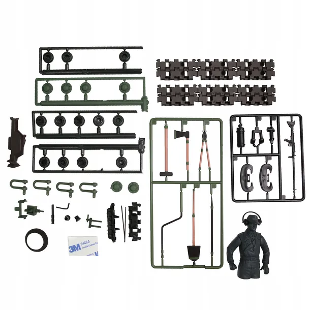 Ilość : 2 ramki z akcesoriami, zatyczka do lufy, zestaw naprawczy do gąsienic, czołgista Niemiecki z słuchawkami