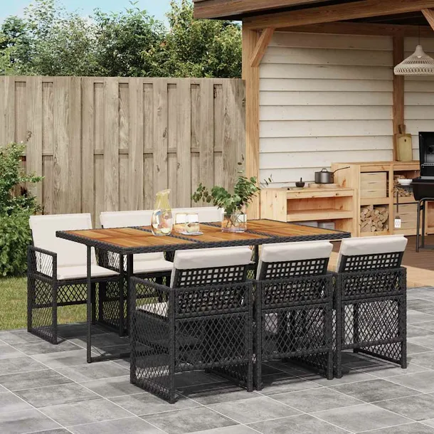 7-cz. zestaw mebli ogrodowych z poduszkami, czarny, polirattan