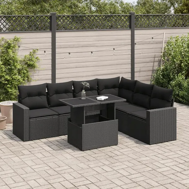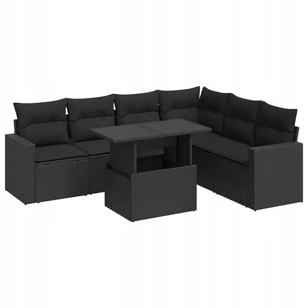 7-cz. zestaw wypoczynkowy do ogrodu, z poduszkami, czarny