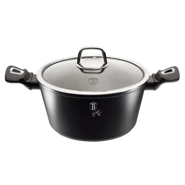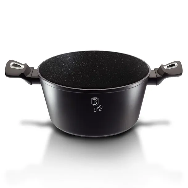 Naczynia firmy BERLINGER HAUS wykonane są z wysokiej klasy kutego aluminium pokrytego wewnątrz potrójną powłoką granitową (marble) o bardzo wysokim współczynniku twardości. Powłoka zewnętrzna występuje w kilku wersjach kolorystycznych o charakterystycznym metalicznym połysku. Te atrakcyjne i modne naczynia wyposażone są standardowo w uchwyty typu SOFT TOUCH (silikon handle). Przystosowane do wszystkich rodzajów kuchenek: gazowa, elektryczna, ceramiczna, halogenowa, indukcyjna. System TURBO INDUCTION (bardzo szybko nagrzewają się) pozwala zaoszczędzić nawet 35% energii.Wymiary: