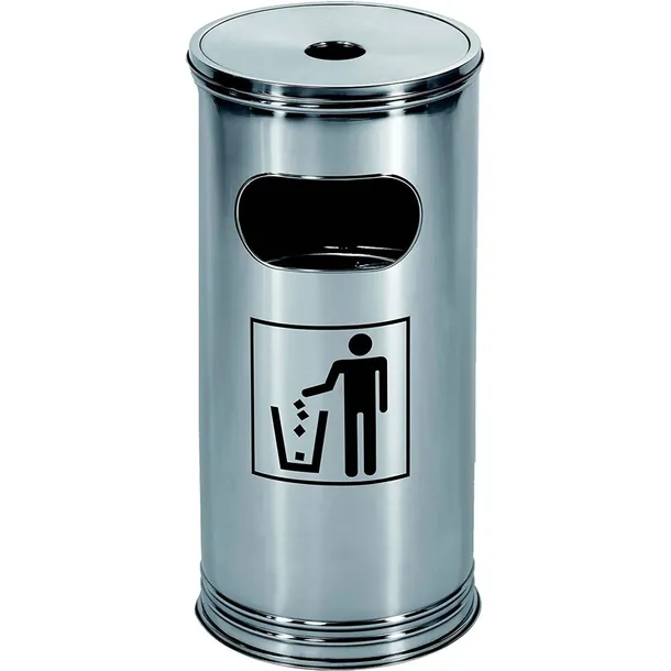 Kosz na śmieci z popielniczką ze stali nierdzewnej.