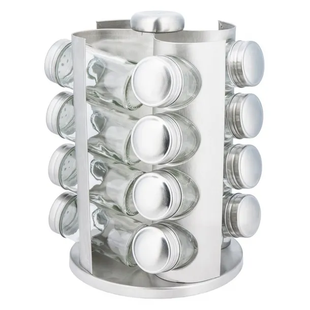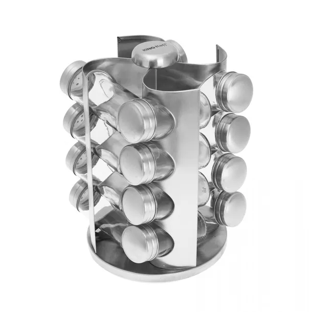 Obrotowy stojak ze stali nierdzewnej na 16 pojemników z przyprawami.