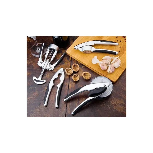Stal satynowana, wygodne, antypoślizgowe, silikonowe uchwyty. Estetyczne i solidne wykonanie.