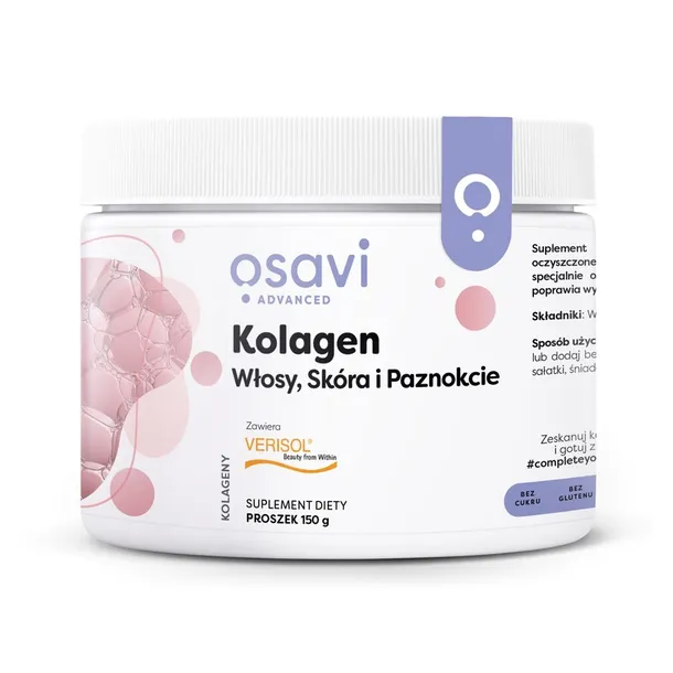Specjalnie opracowany i przebadany klinicznie kolagen, który poprawia wygląd włosów, skóry i paznokci.