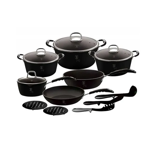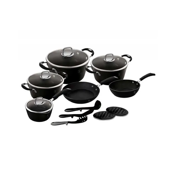 Garnki i akcesoria z serii BLACK PROFESSIONAL LINE firmy BERLINGER HAUS wykonane są z wysokiej klasy kutego odlewanego pokrytego wewnątrz potrójną powłoką granitową o bardzo wysokim współczynniku twardości. Powłoka zewnętrzna występuje w kolorze czarnym. Te atrakcyjne i modne naczynia wyposażone są standardowo w uchwyty typu SOFT TOUCH (silikon handle). Przystosowane są do wszystkich rodzajów kuchenek: gazowa, elektryczna, ceramiczna, halogenowa, indukcyjna. System TURBO INDUCTION (bardzo szybko nagrzewają się) pozwala zaoszczędzić nawet 35% energii.