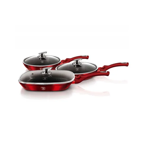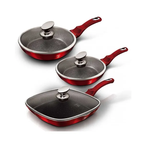 Garnki i akcesoria z serii METALLIC firmy BERLINGERHAUS wykonane są z wysokiej klasy kutego aluminium pokrytego wewnątrz potrójną powłoką granitową (marble) o bardzo wysokim współczynniku twardości. Powłoka zewnętrzna występuje w kilku wersjach kolorystycznych o charakterystycznym metalicznym połysku. Te atrakcyjne i modne naczynia wyposażone są standardowo w uchwyty typu SOFT TOUCH (silikon handle). Przystosowane do wszystkich rodzajów kuchenek: gazowa, elektryczna, ceramiczna, halogenowa, indukcyjna. System TURBO INDUCTION (bardzo szybko nagrzewają się) pozwala zaoszczędzić nawet 35% energii.