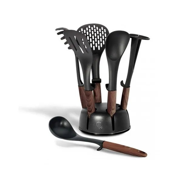 7 elementowy zestaw nylonowych przyborów kuchennych firmy BERLINGER HAUS z linii EBONY ROSEWOOD. Przybory polecane szczególnie do naczyń z powłokami ceramicznymi i teflonowymi. Materiał z którego są wykonane nie rysuje powierzchni naczyń. Jest odporny na wysoką temperaturę do 210 stopni C. Posiada szczególne właściwości antybakteryjne.