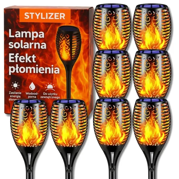 ⭐️Zestaw 8 lamp solarnych – pochodni „Stylizer” (wys. 50 cm)