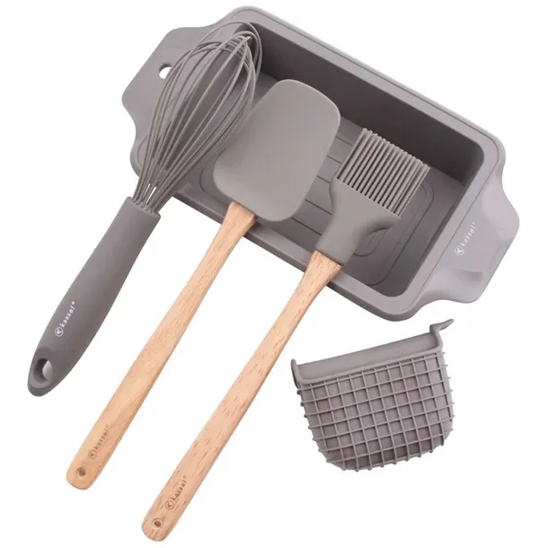 Zestaw do pieczenia ciasta lub chleba. Wykonany z wysokiej jakości silikonu odpornego na temperaturę do 210 st. C oraz naturalnego drewna akacjowego.