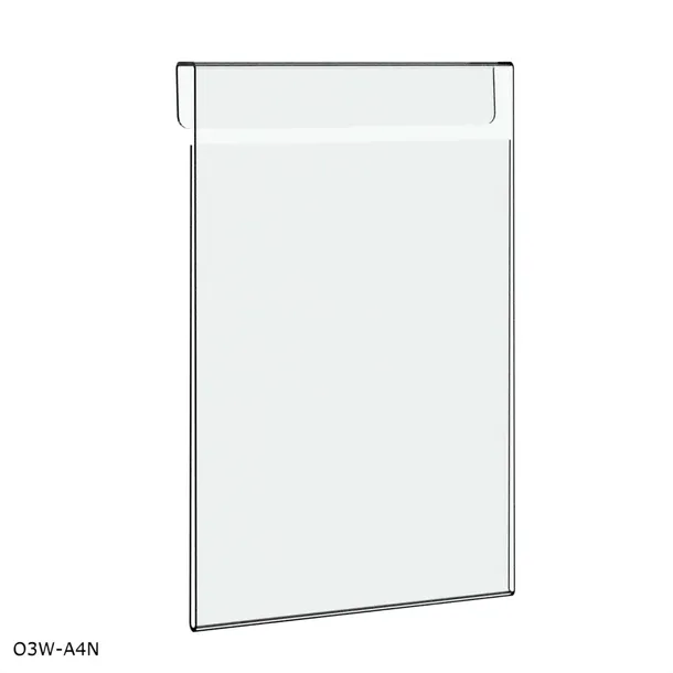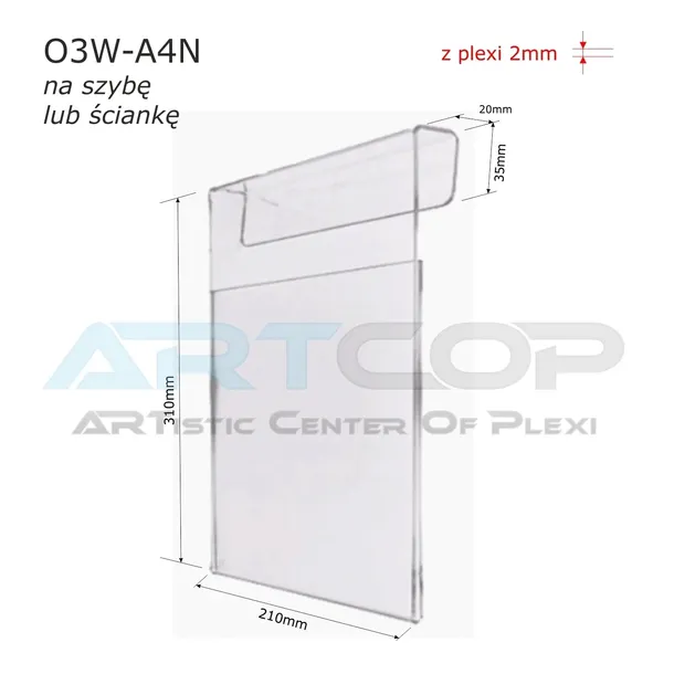 Koszulka formatu A4 pionowa wykonana z plexi bezbarwnej grubości 2mm. Ten model można zawiesić na szybie, w witrynie lub ściance meblowej.