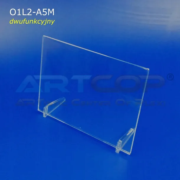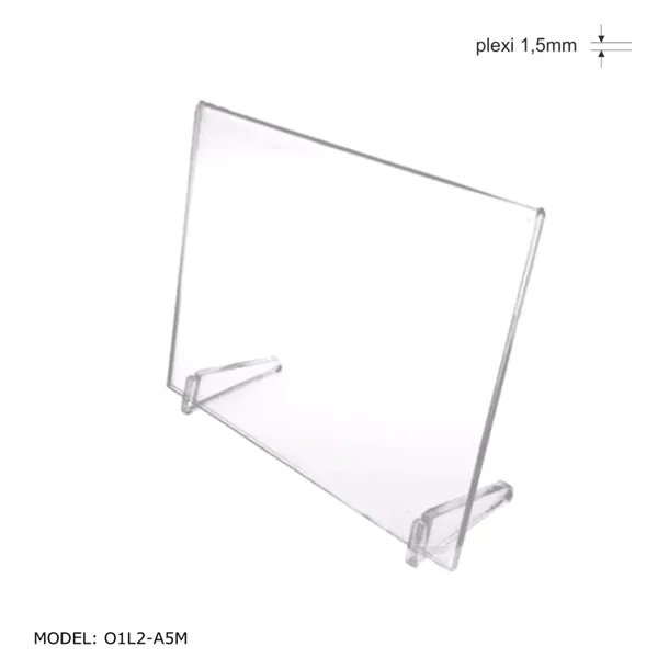 Stojak formatu A5 poziomy wykonany z plexi bezbarwnej grubości 2mm.