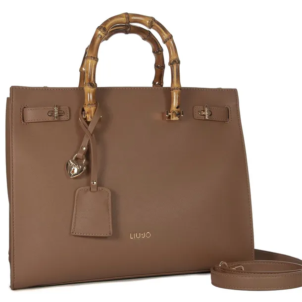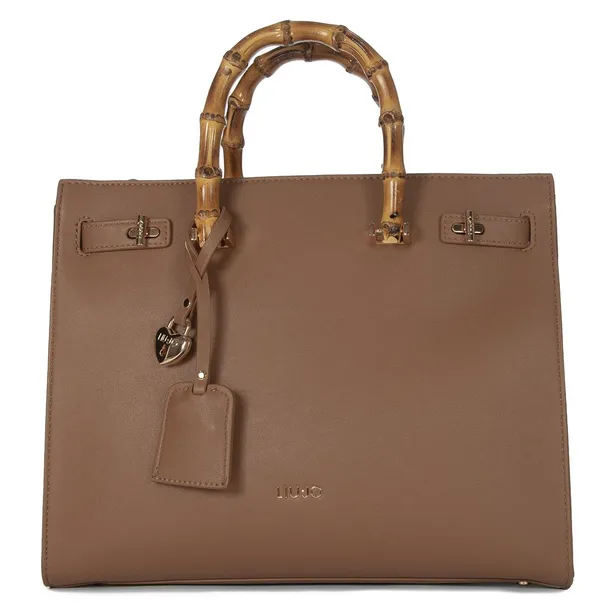 Ekskluzywna damska torebka Liu Jo w eleganckim brązowym kolorze to połączenie klasyki i nowoczesnego stylu. Jej wyjątkowy charakter podkreślają bambusowe rączki, które nadają jej unikalny i luksusowy wygląd. Wykonana z wysokiej jakości materiału, gwarantuje trwałość i wygodę użytkowania. Zamknięcie na suwak oraz przestronne wnętrze z dodatkowymi przegródkami zapewniają funkcjonalność i doskonałą organizację. Torebka posiada również dodatkowy pasek na ramię, dzięki czemu można ją nosić na różne sposoby. Idealny wybór dla kobiet, które cenią modne, stylowe i praktyczne akcesoria.