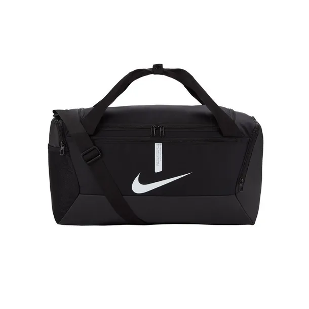 Torba treningowa Nike Academy wyprodukowana została dla pasjonatów sportów, wyjazdów. Dwubiegunowy zamek błyskawiczny. We wnętrzu mała kieszonka. System nośny klasyczny - uchwyty oraz regulowany pasek na ramię. Od frontu zapinana kieszeń. Po bokach dwie, zapinane kieszenie oraz jedna siateczkowa. Czarne dno nie absorbuje wody.