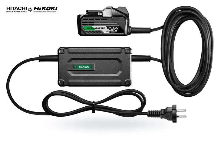 - Alternatywne źródło zasilania dla platformy HiKOKI 36V Multi Volt, które zapewnia nieograniczony czas pracy, gdy dostępne jest zasilanie prądem przemiennym.