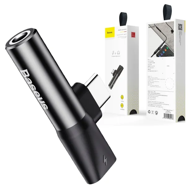 Adapter Audio Baseus USB-C do Mini Jack 3.5mm + USB-C (czarny)