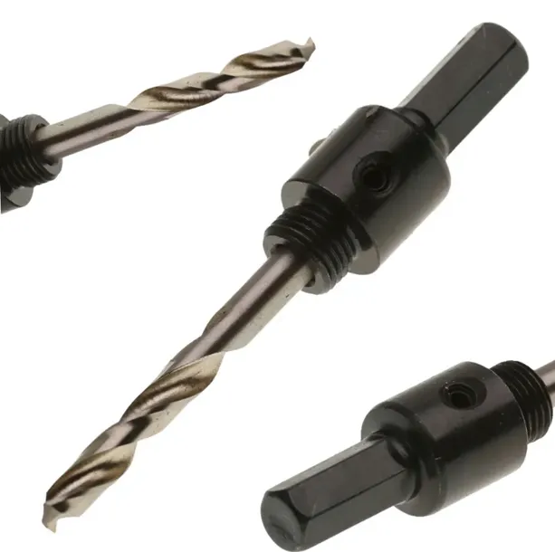 Adapter do otwornic bi-metalowych oraz otwornic z płytkami z węglików spiekanych to narzędzie adaptacyjne, które pozwala na łatwe i szybkie zamocowanie otwornic z jednej strony, a z drugiej do uchwytu wiertarki lub wiertarko-wkrętarki. Adapter wykonany jest z trwałego stopu metali, co zapewnia niezawodność i długotrwałe użytkowanie, nawet w trudnych warunkach pracy. Adapter posiada wiertło pilotujące, które ułatwia precyzyjne ustawienie otworu oraz śrubę kontrującą wiertło pilotujące, która zabezpiecza przed przesuwaniem się otwornicy podczas pracy. Dzięki temu adapter do otwornic zapewnia nie tylko precyzję, ale także bezpieczeństwo w trakcie wiercenia.