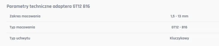 Adapter do wiercenia GT12 B16