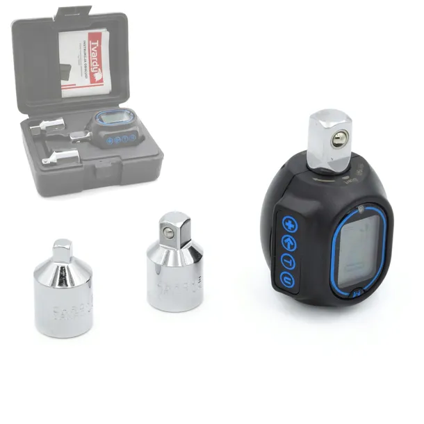 Adapter dynamometryczny umożliwia dokręcanie bez konieczności kupowania klucza dynamometrycznego, wystarczy zamontować go na dowolnej grzechotce lub pokrętle. Duży wyświetlacz LCD umożliwia szybki odczyt parametrów pokazując procentową wartość momentu zadanego w stosunku do momentu faktycznego. Czujnik dźwiękowy i optyczny informuje o zbliżaniu się i dojściu do określonej wartości. Za sprawą trybu uśpienia adapter wyłączy się po trzech minutach bezczynności. Dostępne jednostki: kg-cm, kg-m, ft-lb, in-lb, N-m.