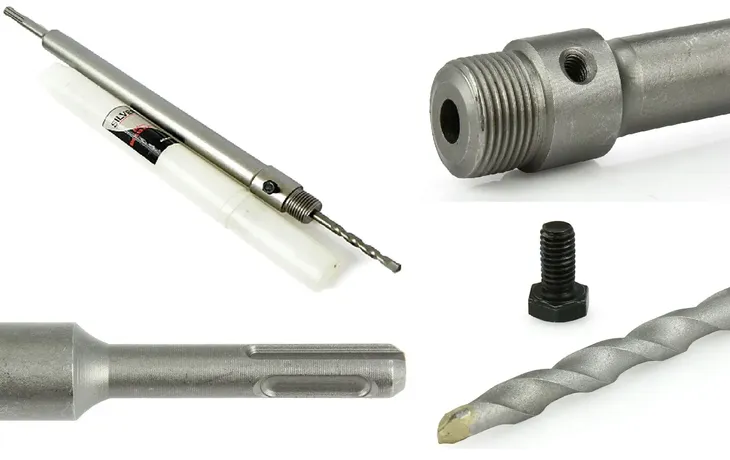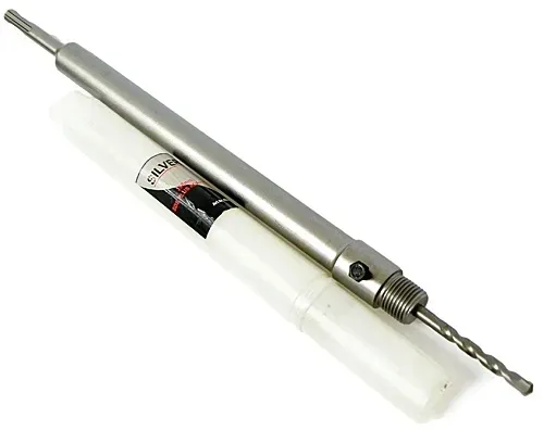 Adapter służy do przedłużenia frezów koronowych na długość 600 mm. Potrzebny wszędzie tam, gdzie należy wykonać otwory długości powyżej 600 mm. Adapter wyposażony jest w wiertło prowadzące.