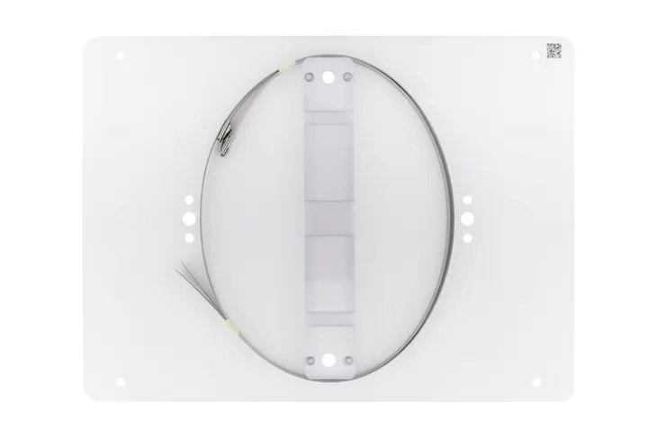 - uchwyt z bezbarwnego poliwęglanu z prowadnicami dla opasek stalowych