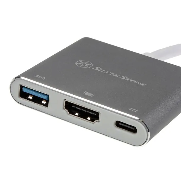 Silverstone EP08C (SST-EP08C) Adapter USB 3.1 Type-C do USB Type-A, USB Type-C PD (data or charging port), oraz 4K HDMI (DP Alt Mode), 100mm, szary