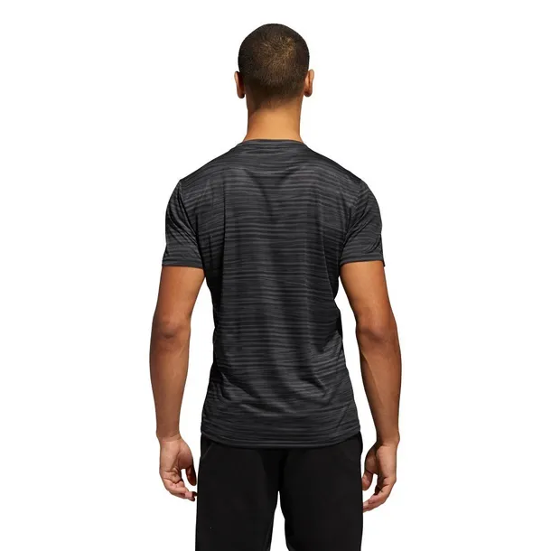 adidas Response Printed Tee to praktyczna, męska koszulka z krótkim rękawem do biegania przeznaczona na intensywne treningi w ciepłe wiosenno-letnie dni. Atrakcyjna melanżowa grafika przypominająca paski tygrysa doskonale wpisuje się w miejską stylistykę. Będzie doskonale prezentować się na zajęciach dodatkowych na siłowni. Regularny krój luźno okrywa ciało zapewniając swobodę ruchu i podkreślając atletyczną sylwetkę.Przewiewny materiał wykonano w technologii Climacool, która dba o sprawne odprowadzanie wilgoci i nadmiaru ciepła z dala od ciała. Zapewnia świetne warunki do intensywnych ćwiczeń i utrzymuje skórę komfortowo suchą na dłużej. Wykończenia w postaci odblaskowych elementów zwiększą bezpieczeństwo biegów po zachodzie słońca.Cechy produktu przewiewna, szybkoschnąca tkanina techniczna: 100% poliester technologia Climacool, odprowadzanie wilgoci i ciepła sportowy krój, zaokrąglony dekolt, swoboda ruchu atrakcyjna, melanżowa grafika odblaskowe elementy
