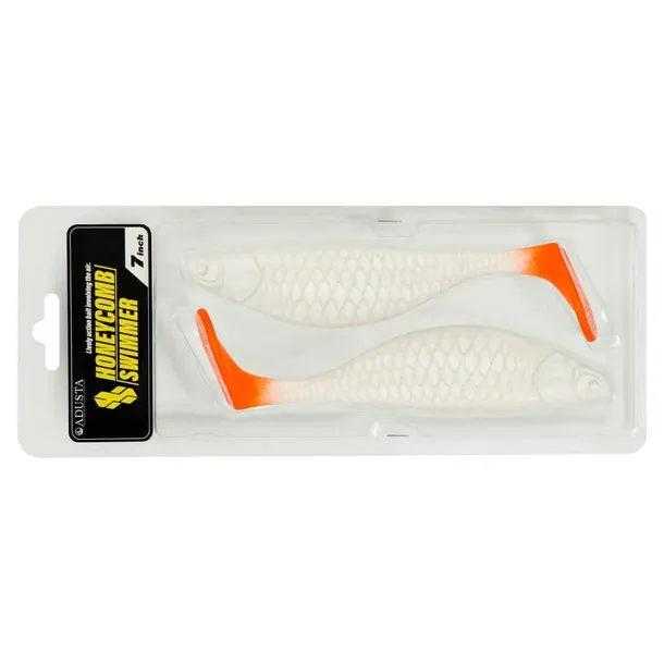 Honeycomb Swimmer to 17,5 cm pięknie wykonanej i bardzo łownej przynęty, której masywny ogon podczas ściągania nadaje kuszący drapieżniki rytm całemu korpusowi. Za ruchem ogona podąża wysoki, znakomicie wyważony, wąski korpus, który lusterkuje błyskając w wodzie całą powierzchnią. Ten nieustanny błysk w połączeniu z masywnym kształtem nie pozostawia obojętnym żadnego ze szczupaków, które spotkają na swojej drodze Honeycomba. Podczas klasycznego podbijania, Honeycomb staje w wodzie ogonem do góry, więc sandacze również nie przepływają obojętnie obok tak zaprezentowanej przekąski i agresywnie zdejmują przynętę z dna. Pozostaje więc uzbroić się w cierpliwość, mocny kij, dokręcić hamulec i oczekiwać na branie życia.