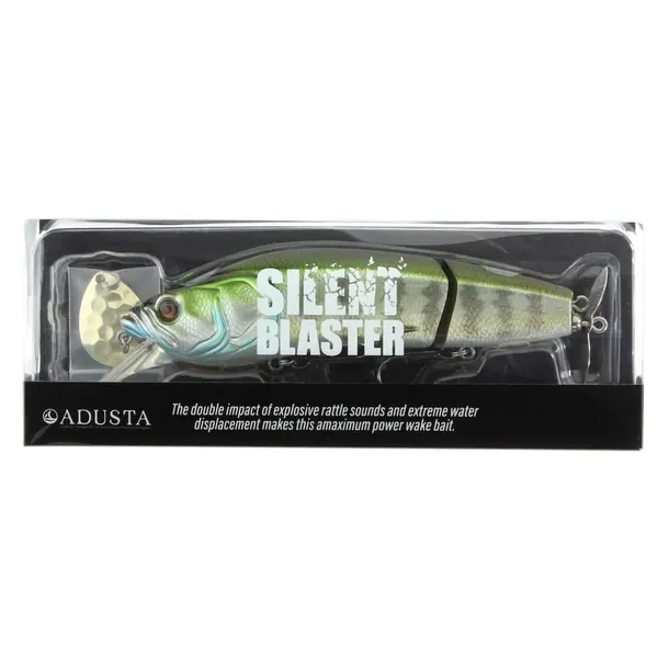 Adusta Silent Blaster posiada łamany korpus o bardzo dużej wyporności co gwarantuje stabilność przynęty. Wobler udaje dużą rybkę i generuje silny ruch falowy wraz z charakterystycznym dźwiękiem, z którego znane są duże przynęty powierzchniowe, co zachęca do ataku każdego drapieżnika. Wbudowane kulki stukają wybuchowo i w połączeniu z metalicznymi dźwiękami generowanymi przez śmigiełko lub wahadło w tylnej części przynęty prowokują ryby do uderzenia.