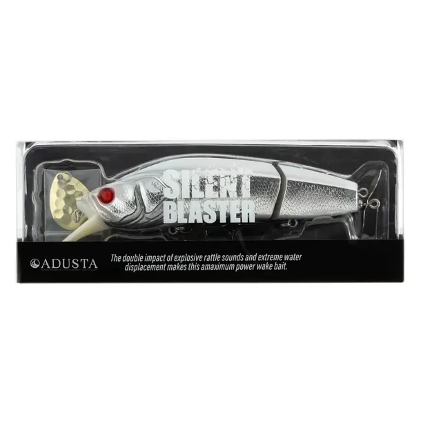 Adusta Silent Blaster posiada łamany korpus o bardzo dużej wyporności co gwarantuje stabilność przynęty. Wobler udaje dużą rybkę i generuje silny ruch falowy wraz z charakterystycznym dźwiękiem, z którego znane są duże przynęty powierzchniowe, co zachęca do ataku każdego drapieżnika. Wbudowane kulki stukają wybuchowo i w połączeniu z metalicznymi dźwiękami generowanymi przez śmigiełko lub wahadło w tylnej części przynęty prowokują ryby do uderzenia.