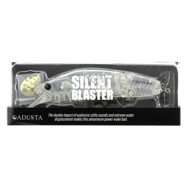 Adusta Silent Blaster posiada łamany korpus o bardzo dużej wyporności co gwarantuje stabilność przynęty. Wobler udaje dużą rybkę i generuje silny ruch falowy wraz z charakterystycznym dźwiękiem, z którego znane są duże przynęty powierzchniowe, co zachęca do ataku każdego drapieżnika. Wbudowane kulki stukają wybuchowo i w połączeniu z metalicznymi dźwiękami generowanymi przez śmigiełko lub wahadło w tylnej części przynęty prowokują ryby do uderzenia.