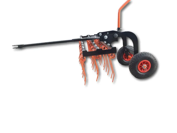 - Stalowe palce są wystające i zakrzywione do góry, dzięki czemu usuwają słomę i mech z trawy