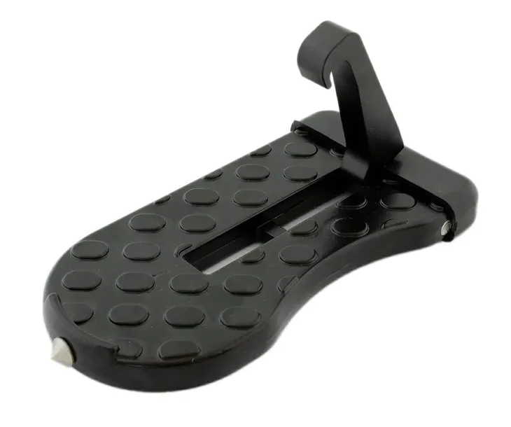 Uniwersalny, aluminiowy podest samochodowy. Doskonale sprawdzi się jako dodatkowy stopień, który ułatwi montaż i załadunek górnego bagażnika bądź dostanie się na dach pojazdu. Prosty i wygodny montaż na element zamka drzwi w karoserii auta. Uchwyt został zabezpieczony specjalną pianką, co uniemożliwia zarysowanie karoserii. Wzmocniona budowa zapewnia udźwig aż do 120 kg. Specjalna faktura na powierzchni zapewnia antypoślizgowość i zapobiega przypadkowym upadkom. Na froncie podestu znalazł się zbijak do szyb przydatny w kryzysowych sytuacjach.