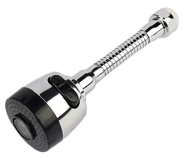 Uniwersalna nakładka napowietrzająca na kran - aerator. Oszczędza wodę przy zachowaniu pełnego komfortu użytkowania. Napowietrzacz jest w pełni obrotowy w płaszczyźnie 360 stopni. Giętka konstrukcja węża umożliwia jego wygięcie w optymalnej pozycji. Posiada wygodny przycisk do zmiany trybu pracy (2 siły strumienia wody).