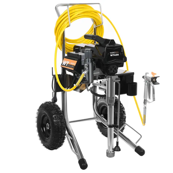 Model WT40H to nowoczesny, wydajny agregat malarski, przeznaczony do pracy na średnich i dużych powierzchniach, wymagających perfekcyjnego i trwałego krycia. Wyposażony w mocny silnik o mocy 3000 W oraz wysokowydajną pompę, urządzenie pozwala na malowanie powierzchni o metrażu do 140 000 m² rocznie.