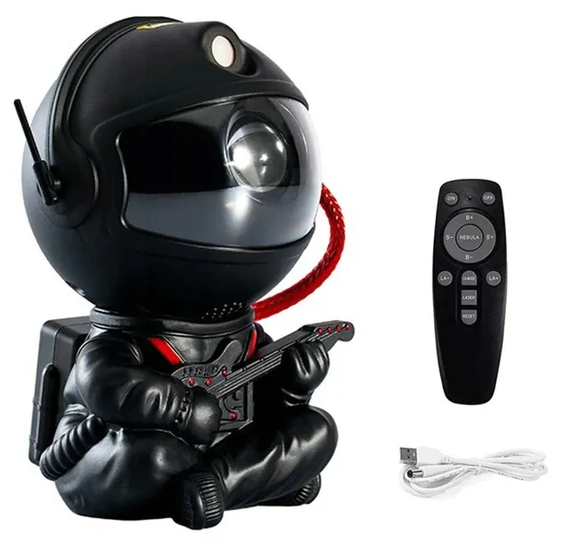 - Niecodzienny projektor gwiazd LED w kształcie siedzącego astronauty z gitarą w rękach.