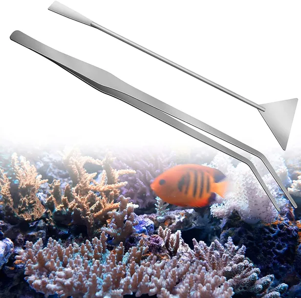 Akcesoria do akwarium 2szt. Narzędzia do aquascapingu ze stali nierdzewnej: Szpatułka do podłoża 32 cm - stwórz gładkie nachylenia podłoża i tarasy Zakrzywiona pęseta 38 cm – zasadź swoje żywe rośliny wodne z wygodą i łatwością. Specjalnie zaprojektowany delikatny klips końcowy, nie szkodzi małym lub cienkim roślinom wodnym. Zestaw narzędzi do akwarium wykonany jest z wytrzymałej, wysokiej jakości stali nierdzewnej. Po każdym użyciu należy je spłukać i wysuszyć, aby mogły służyć przez długi czas. Dane techniczne: Wymiary: Pęseta 38cm/ Szpatułka 32 cm Materiał: stal nierdzewna Kolor: Srebrny. Akcesoria do akwarium 2szt.