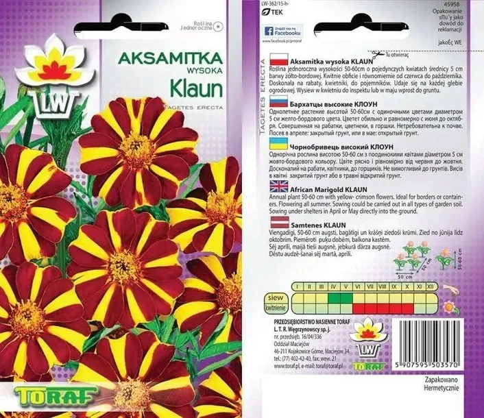 - Nasiona Aksamitka Wysoka Klaun Toraf
