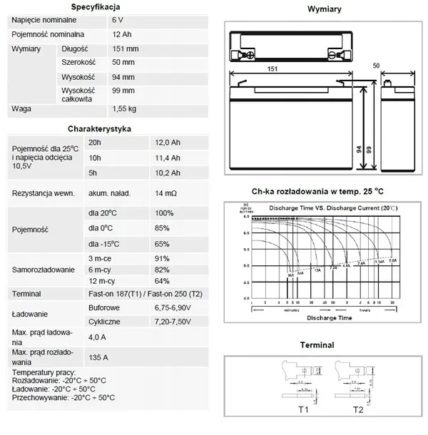 Preferowane zastosowania akumulatorów tej serii to: zasilanie rezerwowe w systemach automatyki, kasach fiskalnych, źródło energii w urządzeniach przenośnych, zasilanie silników i innych urządzeń w trybie pracy cyklicznej. Dla rozładowań 50% do 500 cykli.